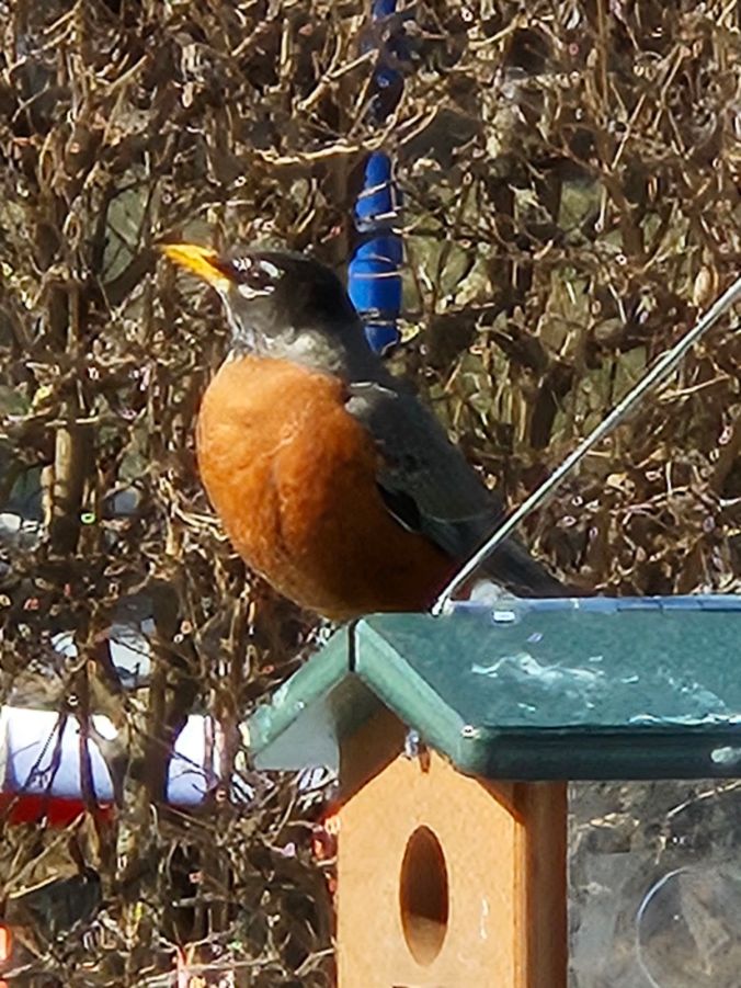 According to the calendar we have one week of winter left, but the spring temperatures are here now. My crocuses are blooming and the daffodils and tulips have both shot up. However, the squirrels have been digging up my tulip bulbs and feasting on them. I know there will be many bare spots in the flower bed.