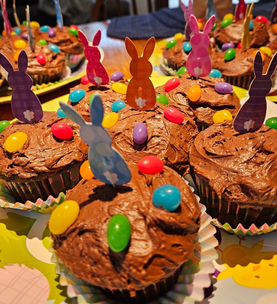 Cake walks have changed since they originated on slave plantations. Participants no long prance in a square formation but walk around in a circle. These cupcakes will be given to the child who is standing on the right number when the music stops. A lot of fun and sugar will be consumed at the church’s annual Easter egg hunt today.