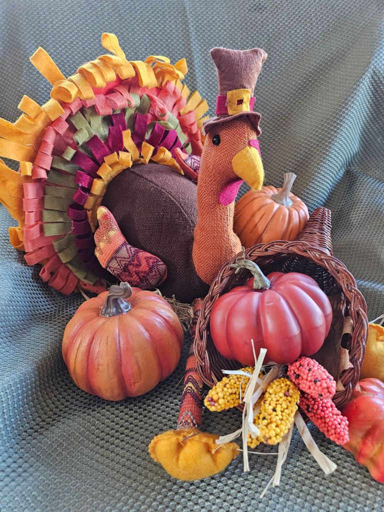 There are skits about scarecrows, turkeys and women who love to decorate. The decorating women represent me except I don’t go crazy like they do. I admit I have a schedule for decorating. The first of October the Halloween decorations go up and come down on November 1. Pumpkins stay, but scarecrows and turkeys go up. I then relax until Thanksgiving is over. I enjoy the cool weather and blue skies as I clean the garden and protect my roses for the winter. I am still picking roses which is very unusual, so that task awaits. Being outside always brings me closer to God. The beauty surrounds me and I quietly sing his praises. (I don’t have the gift of singing)