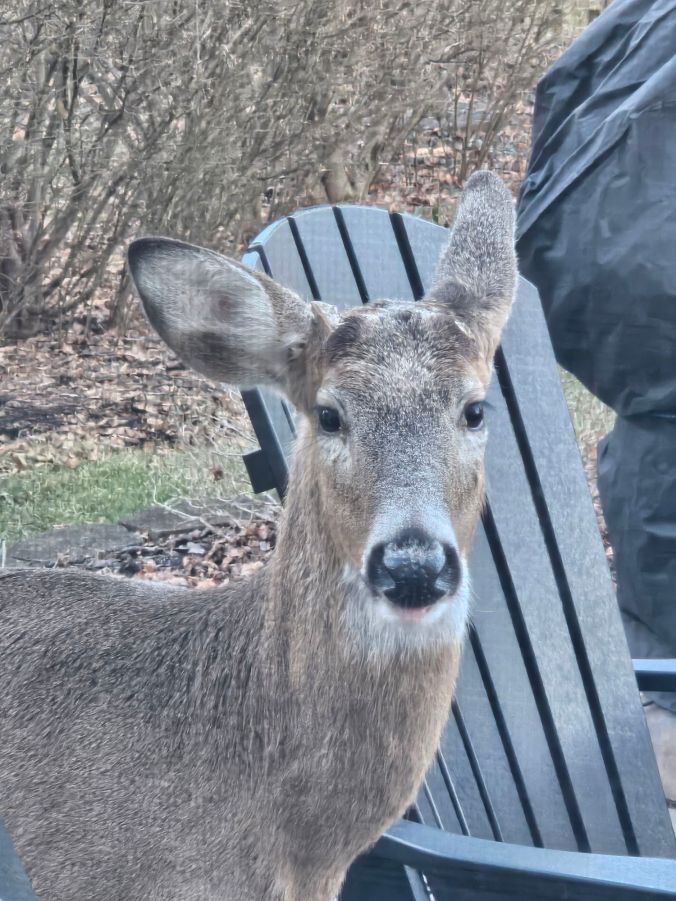 I admit I complain when the stupid deer eat my lilies, roses and tulips, but I was delighted to find a deer looking in the window at me. They are beautiful, gentle animals. What a wonderful surprise and it brightened my day!